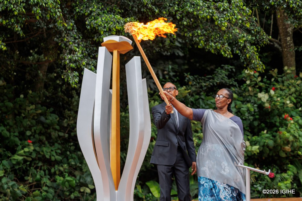 President Paul Kagame and First Lady Jeannette Kagame light the “Candle of Hope” to mark 100 days of remembrance.