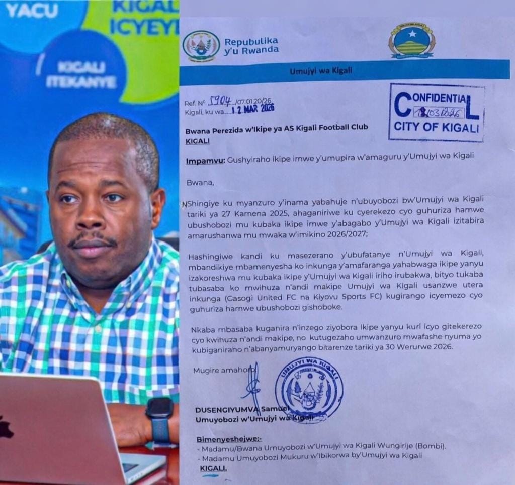 In a letter sent to AS Kigali on March 12, 2026, Kigali City reminded the club that during a meeting held on June 27, 2025, the parties discussed the idea of pooling resources to build a single men’s football team representing the City of Kigali, which would compete starting from the 2026/2027 season.