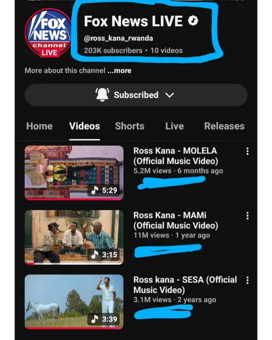 Although the channel still displayed the name Ross Kana, users who clicked on its videos found themselves watching live broadcasts and news content from American media, particularly Fox News.